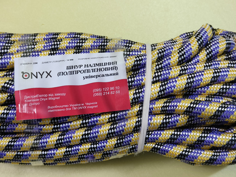 Шнур надпотужна 14 мм (репшнур) — это текстильное изделие, предназначенное для многоразового использования, но используемое только в тех случаях, когда занижены требования к их надежности, прочности и износостойкости. Изделия более гибкие, чем тросы и канаты, они отлично соединяются узлом и не портят грузы при соприкосновении. Репшнур 14 мм применяется в альпинизме, скалолазании и спелеологии исключительно для выполнения вспомогательных функций — для вязания петель со схватывающими узлами, изготовления альпинистских лестниц и др., а так же используются для креплений, упаковочных, хозяйственных нужд, и для подъема неответственных грузов.