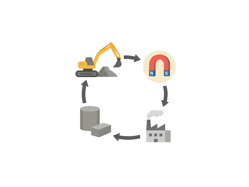 Рис. 1 схема «життєвого циклу» неодимового магніту - від видобутку до переробки.