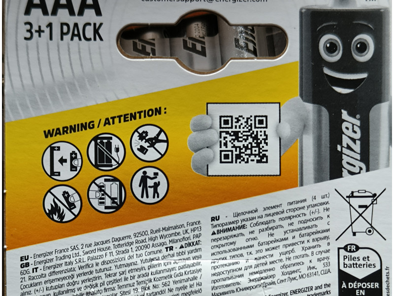 Батарейка Energizer AAA LR03 4шт на блістері (мініпальчик)
