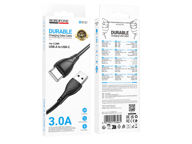 Кабель Borofone BX121 Type-C 3A пропонує оптимальне поєднання якості, сумісності та ефективності при роботі з сучасними пристроями.