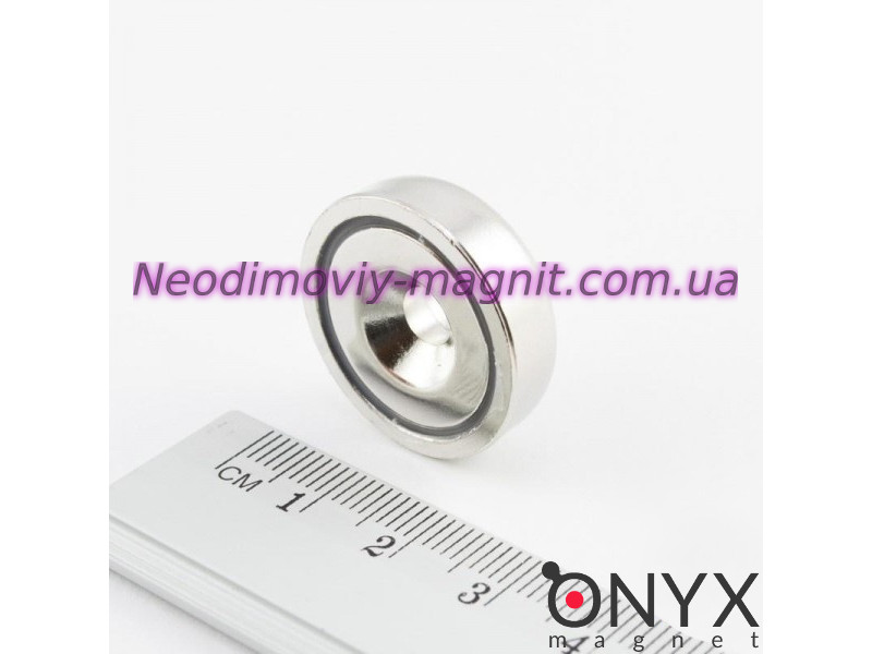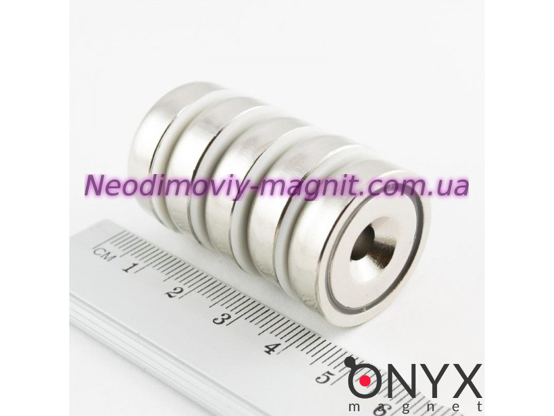 Неодимове магнітне кріплення з зенковкой A25. Даний спосіб виготовлення полягає в приміщенні неодимового магніту в сталевий корпус на епоксидний клей. В цьому випадку магнітне поле з іншого боку магніту (де він приклеєний до корпусу) частково переходить на робочу поверхню і тим самим магніт, укладений в корпус, при однакових розмірах має більше силу на відрив, ніж звичайний магніт шайба. Магніт постійного типу з нікельованим покриттям, підходить для безлічі побутових потреб. Має компактний розмір. Сила магніту: 25кг, що перевірено Тесламетром. Гарантія на властивості магніту, це означає, що за 10 років втрачається до 2% магнітних властивостей супермагніта - кріплення в корпусі з зенковкой A25. Неодимове магнітне кріплення в корпусі з зенковкой A25 - один з найпопулярніших магнітів в Україні.
