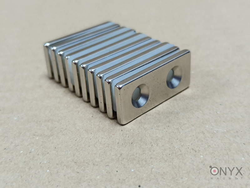 Неодимовий магніт призма 35x15x3мм під потай (x2) 4/8мм. Магніт постійного типу з нікельованим покриттям, підходить для безлічі побутових потреб. Має компактний розмір. Сила магніту: 10кг, що перевірено Тесламетром. Гарантія на властивості магніту, це означає, що за 10 років втрачається до 2% магнітних властивостей супермагніта - неодимовий магніт диск під потай 35х15х3мм. Неодимовий магніт диск 35х15х3мм під потай - один з найпопулярніших магнітів в Україні.