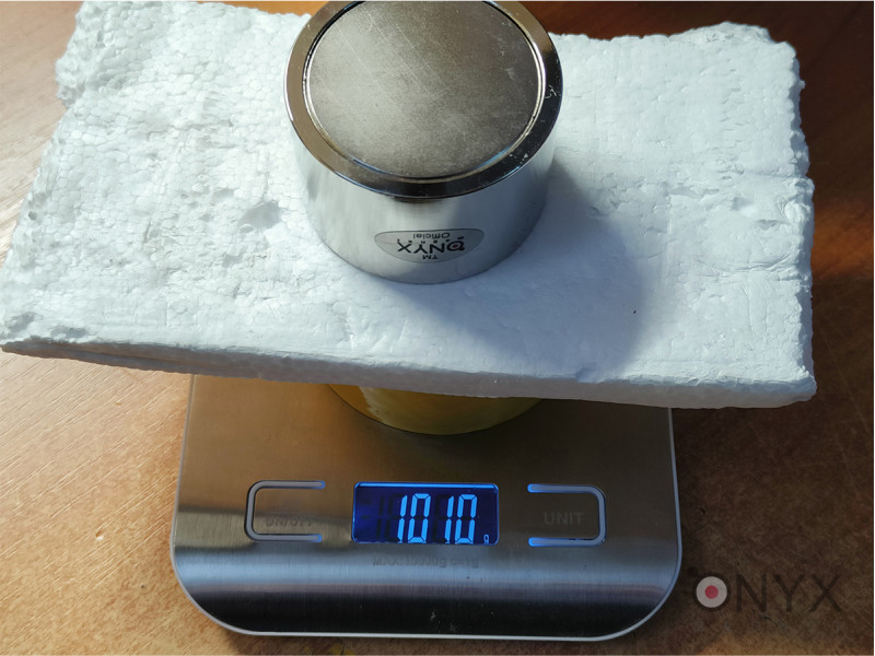весь виріб разом з магнітом 55х25мм вагою 450г отримує масу 1010г